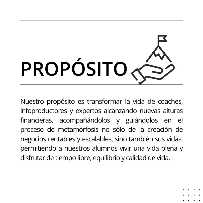 Comenzamos por una Reprogramación de pensamientos y creencias para luego dotar de Identidad y sentido tu negocio, clarificando el Porqué y definiendo su misión y Visión.