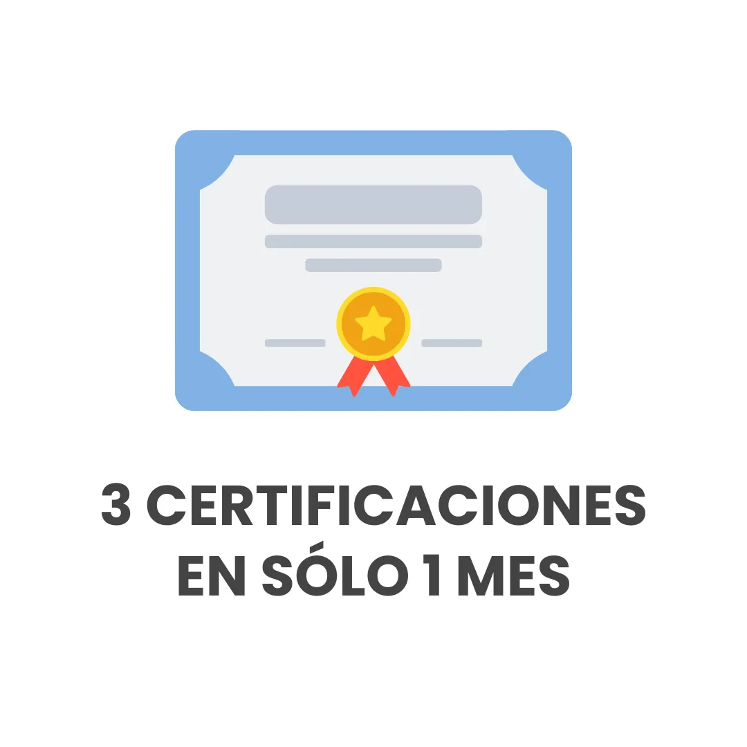 Tienes Acceso por 6 meses a la plataforma. Puedes completarlos en menos de 1 mes LOS 3 cursos si te organizas.